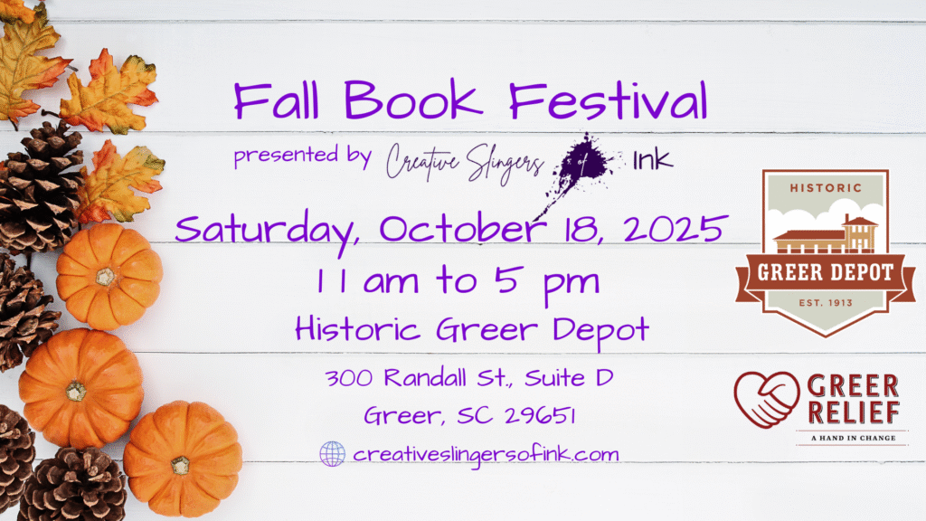 Join us at the Fall Book Festival 2025, hosted by Creative Slingers of Ink, featuring 30+ indie authors from a wide variety of genres. This is your chance to meet local writers, find new favorites, and enjoy a relaxed, book-loving atmosphere in a historic indoor venue.